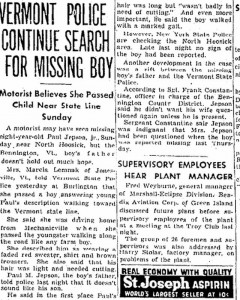 1950- On October 12, Paul Jepson an eight year old went missing. His scent was followed by dogs, but it was lost on a highway.